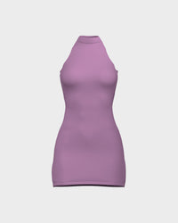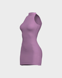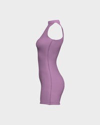 Womens Sleeveless High Neck Ribbed Dress - Pink
